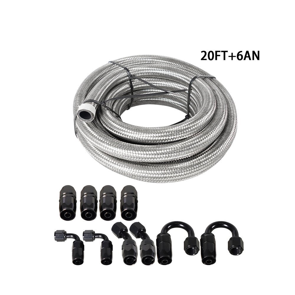 1 PCS × 10/16/20 FT 6AN CPE Stainless Steel Braided Fuel Hose Silver