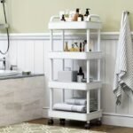 1pc Small Stroller Rack. Kitchen Floor Storage Rack. Living Room Bedroom Bedside Multi-layer Storage Rack With Wheels. Snack Car