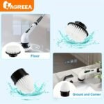 1set. IAGREEA Electric Cleaning Brush. Rotary Floor Scrubber. Electric Rotary Scrubber. Replaceable 6 Brush Heads And Adjustable Extension Handle. 360 Cordless Cleaning Brush For Bathroom. Bathtub. Tiles. USB-C Charging Line Rotary Cleaning Brush