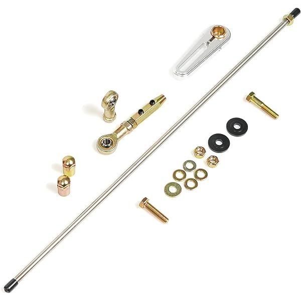 【PACKAGE INCLUDES】Transmission Column Shift Linkage Kit includes adjustable drive arms. female rod ends. hex connectors with set screws. nuts. female rod ends. and hex head bolts. As shown in the picture.