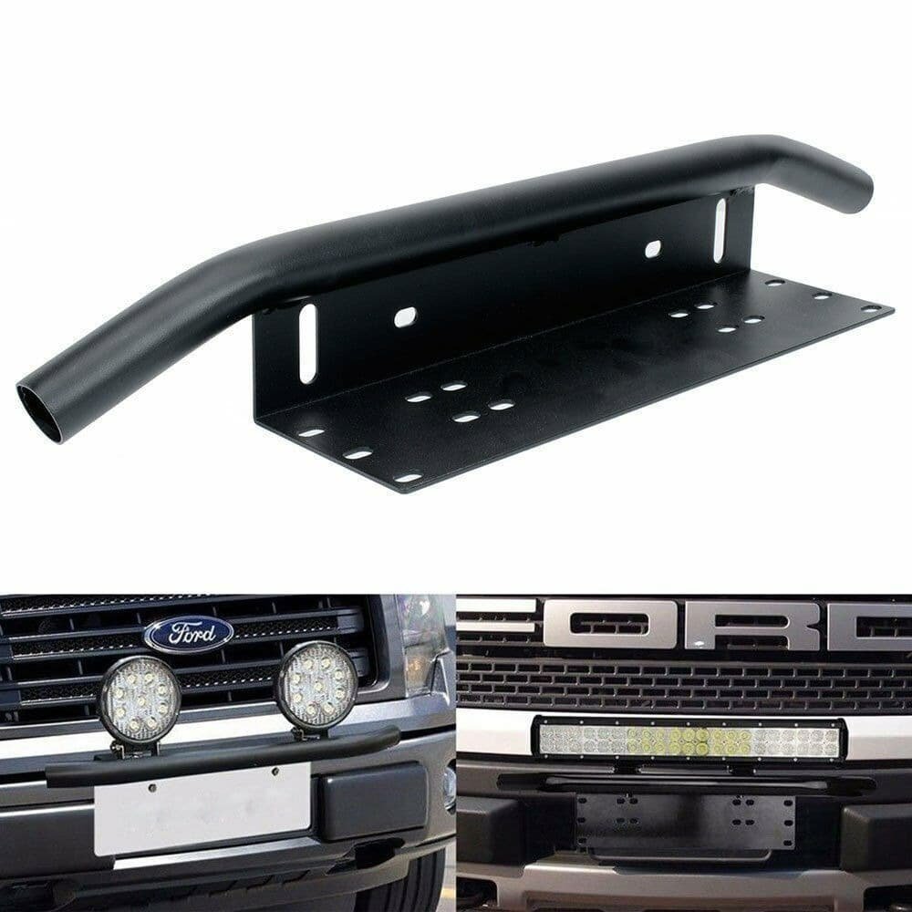 Aftermarket bull bar style front license plate bracket