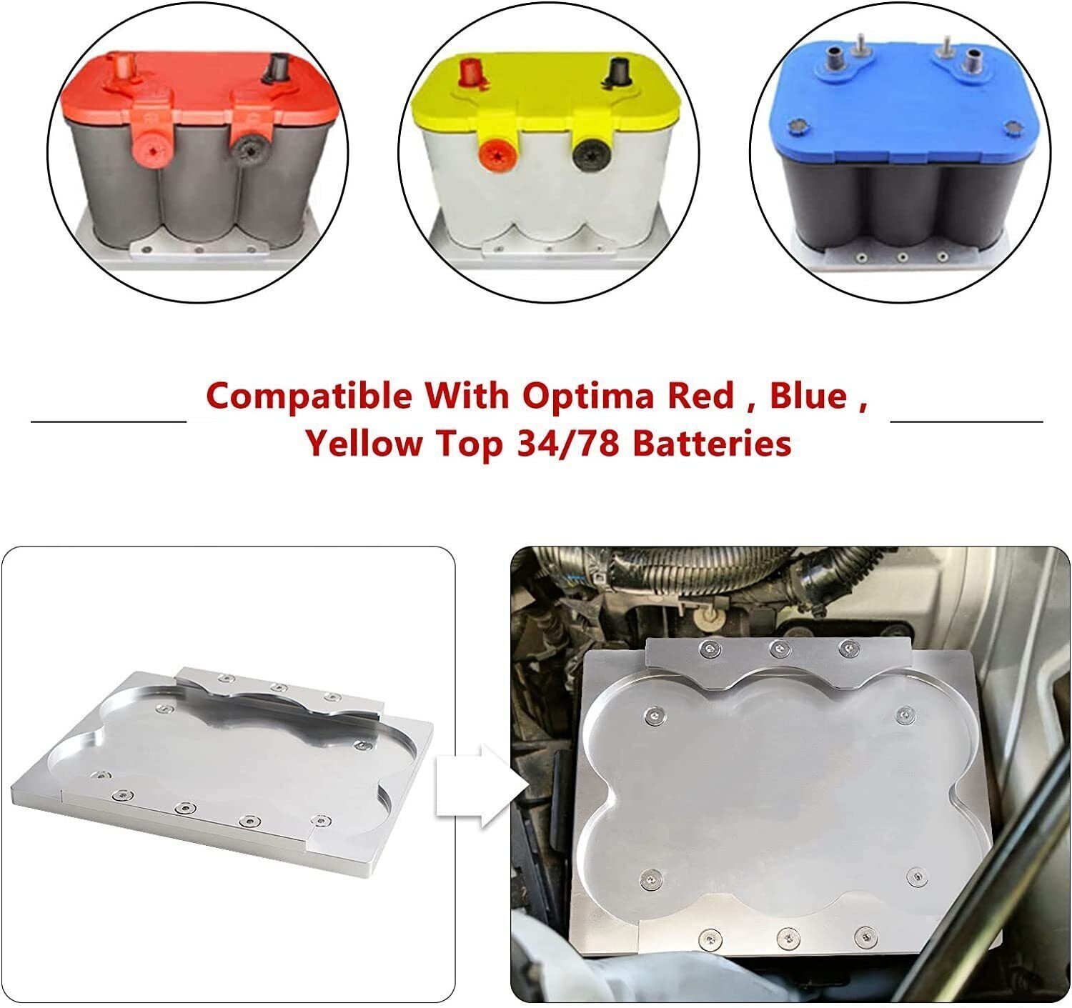 【SPECIALLY DESIGNED】:The Battery Holder Tray Bottom is specially designed.Shape and the exact size of the tray.To follow the shape and contour of the Optima battery to prevent sliding.