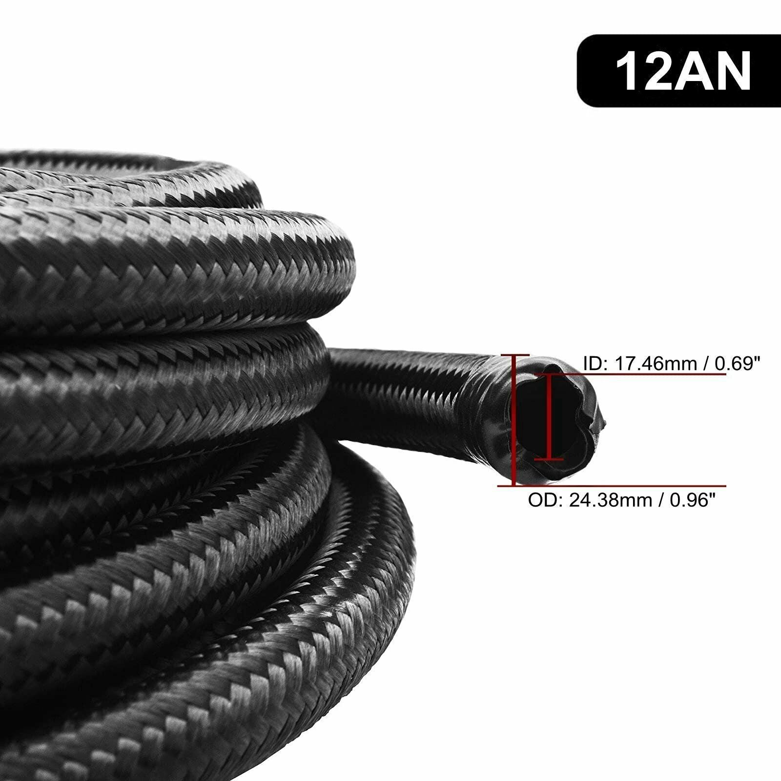 Black Fuel Hose Oil Gas Line AN4-AN6-AN8-AN10-AN12 Nylon/Stainless Steel Braided