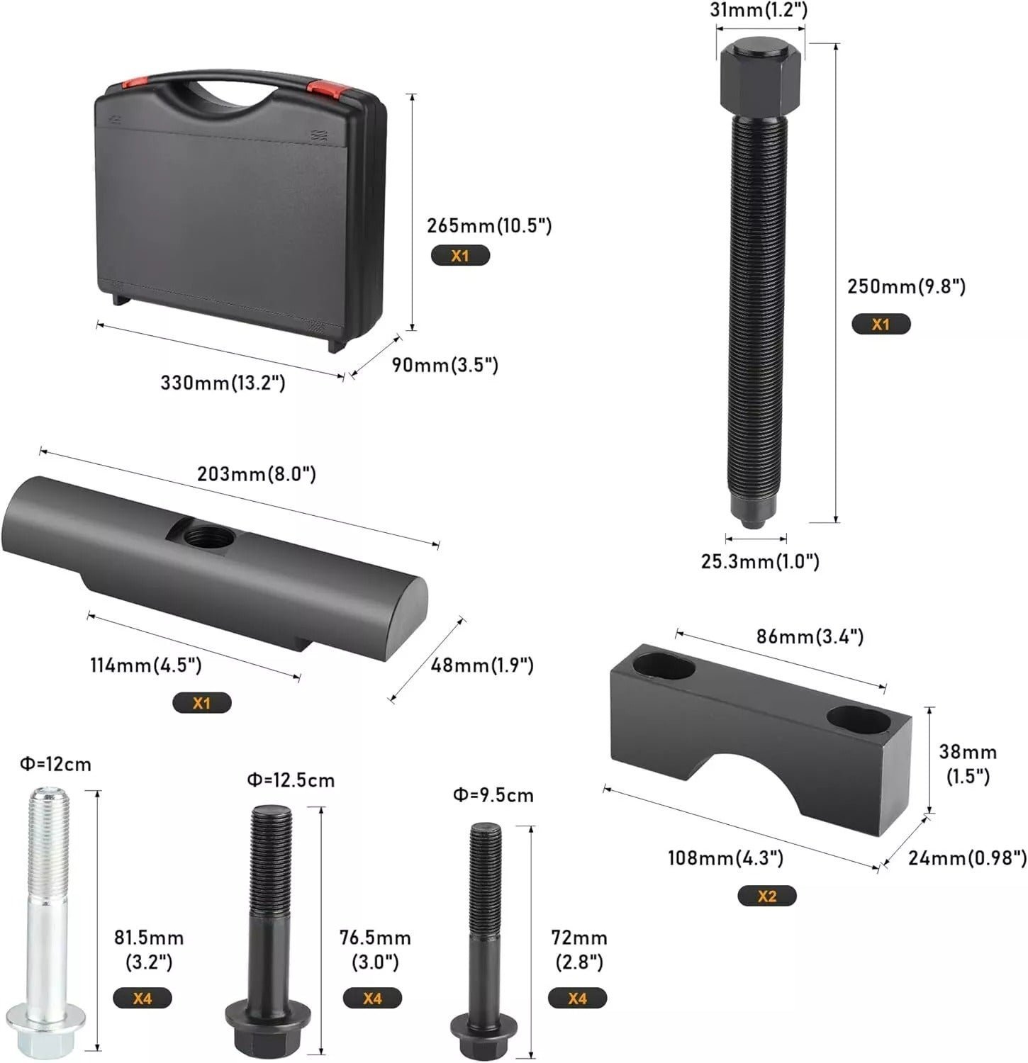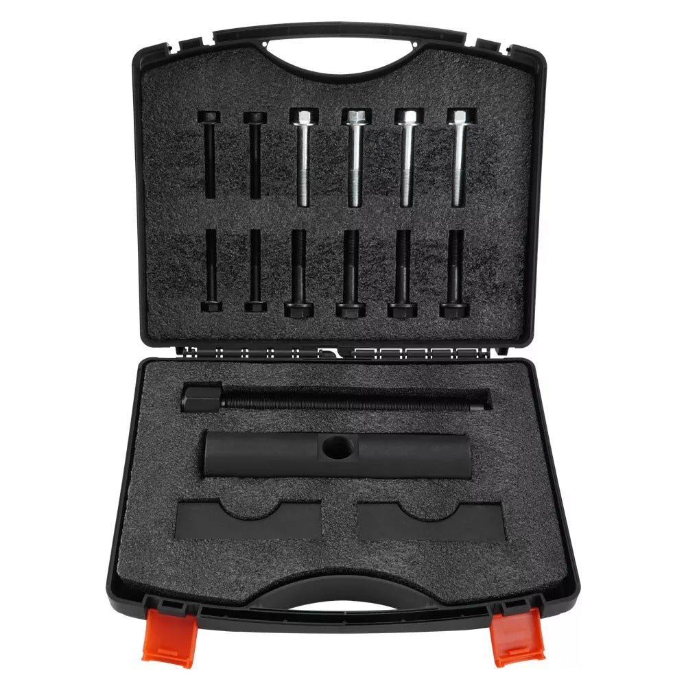 Superior Material: Flexibility in caps design to serve a variety of class 6-8 trucks. To extend the life of the forcing screw. the pull bar is precisely milled with a chamfer. High-grade steel with black coated for rust and corrosion resistance. hardened construction for high strength and impact resistance.