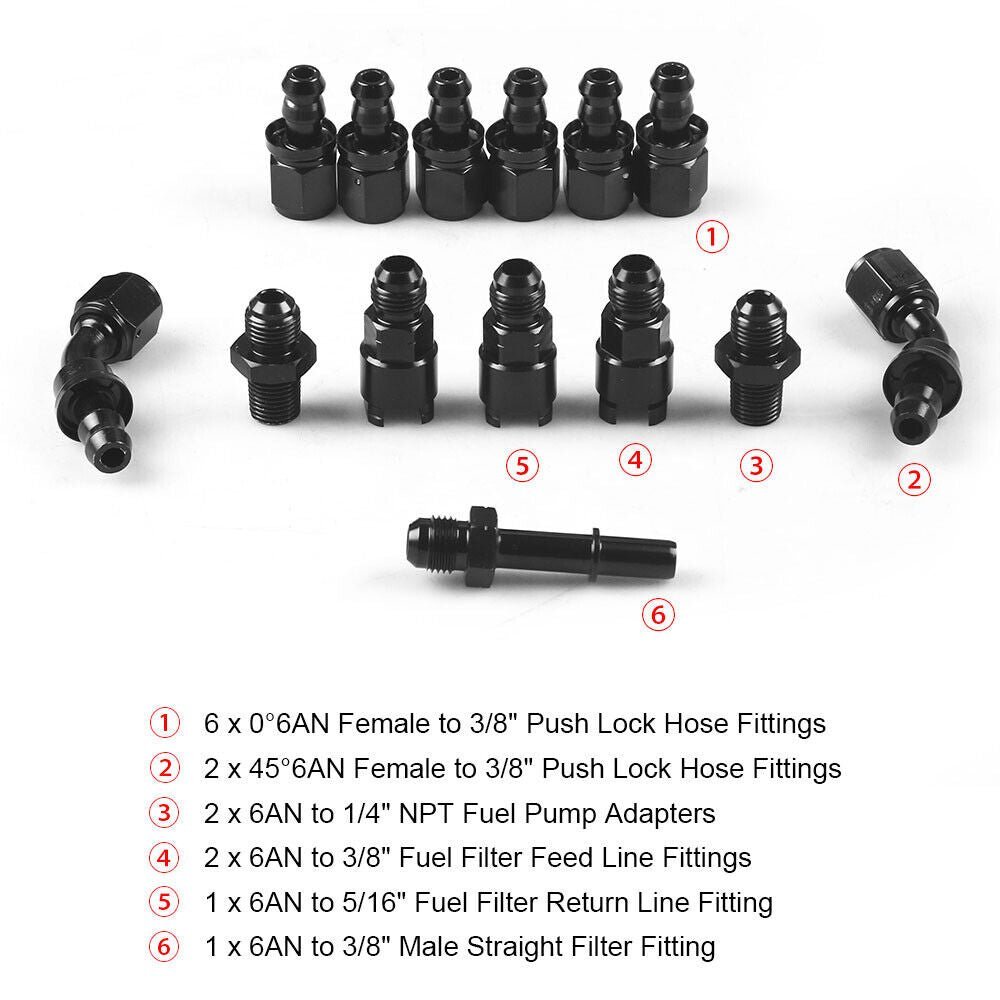 This complete LS conversion fuel line kit comes with 25-feet of properly rated fuel injection hose and all the correct fittings to plumb your fuel lines from the fuel pump forward. All the fittings feature a reusable spin-lock connector that does not require special tools to disassemble.Professional Installation Is Highly Recommended. No Instruction Included.