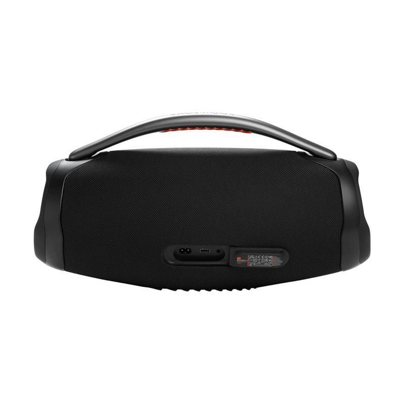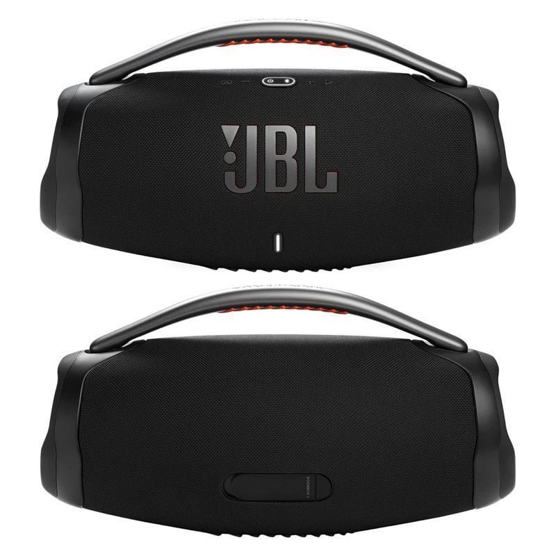 • IP67 dust and water proof: To the pool. To the park. The JBL Boombox 3 is IP67 dustproof and waterproof. so you can bring your speaker anywhere. rain or shine. Strong. bold design: We’ve updated the sleek. iconic JBL silhouette. With twin sidecaps and a sturdy metal handle with an eye-catching orange silicone grip. you can take your music—and your style—anywhere.
