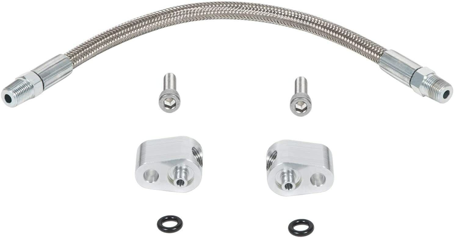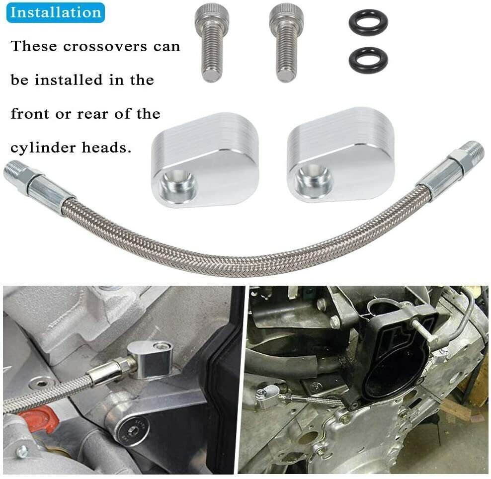 This Throttle Body Bypass Hose / Coolant Steam Crossover Tube can be installed on the front or rear of the cylinder head. The driver’s side adapter has one 1/8″ NPT port. The passenger side adapter has one 1/8″ NPT ports.
