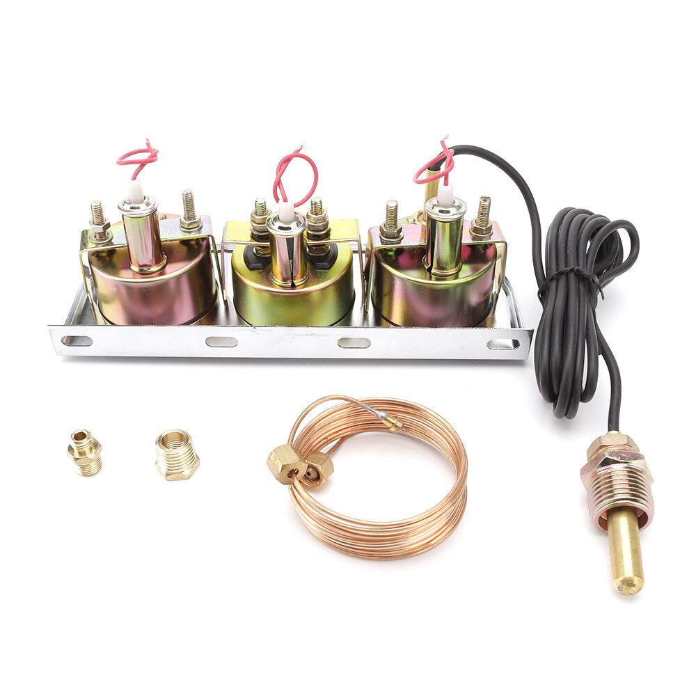 Mechanical 2” 52mm Chrome Triple Gauge Set Water Temp Oil Pressure AMP Meter