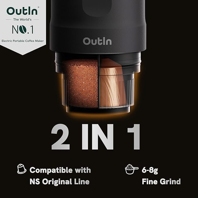 - 【FAST SELF-HEATING & RICH CREMA】OutIn Nano coffee machine heats 50ml of 25℃ room temperature water to 92℃ within 200 seconds. 20-bar pressure ensures a smooth extraction with rich crema comparable to results from professional desktop coffee machines!