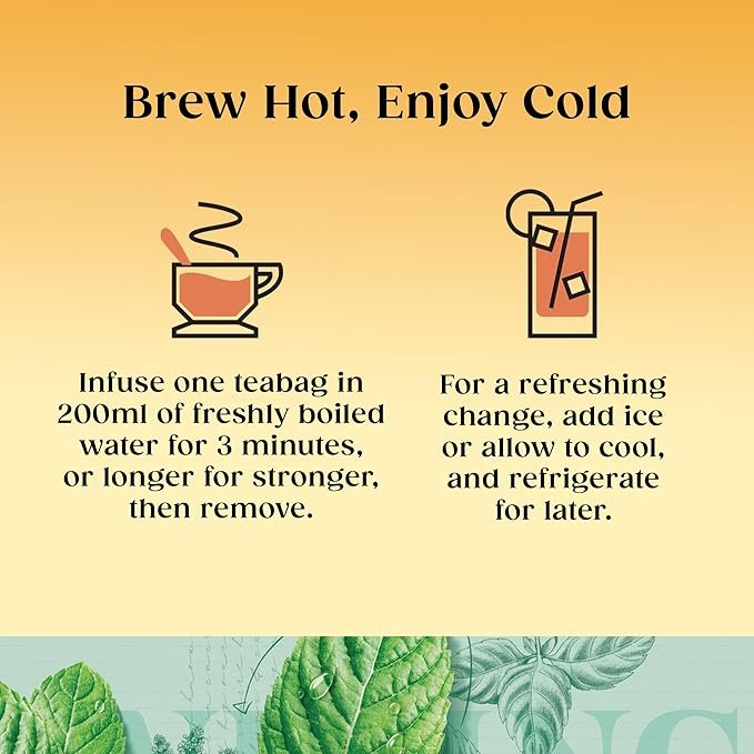 - Easy Preparation: Infuse one teabag in 200ml of freshly boiled water for 3 minutes, or longer for a stronger flavor. For a refreshing change, add ice or refrigerate for later.