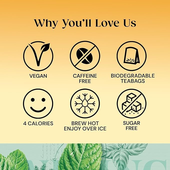- Healthy Herbal peppermint flavoured Drink: This naturally caffeine and sugar free vegan tea can be enjoyed at any time of day, as a refreshment in the morning or a soothing cup in the evening