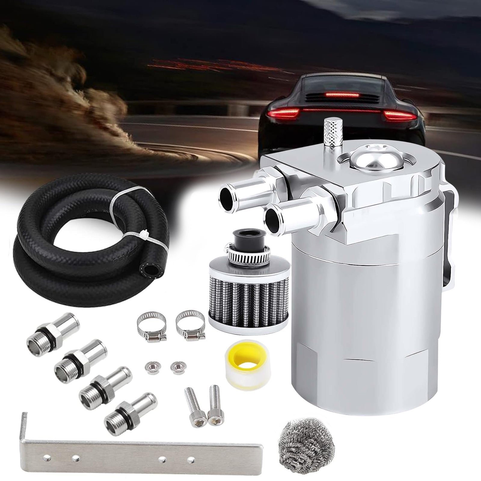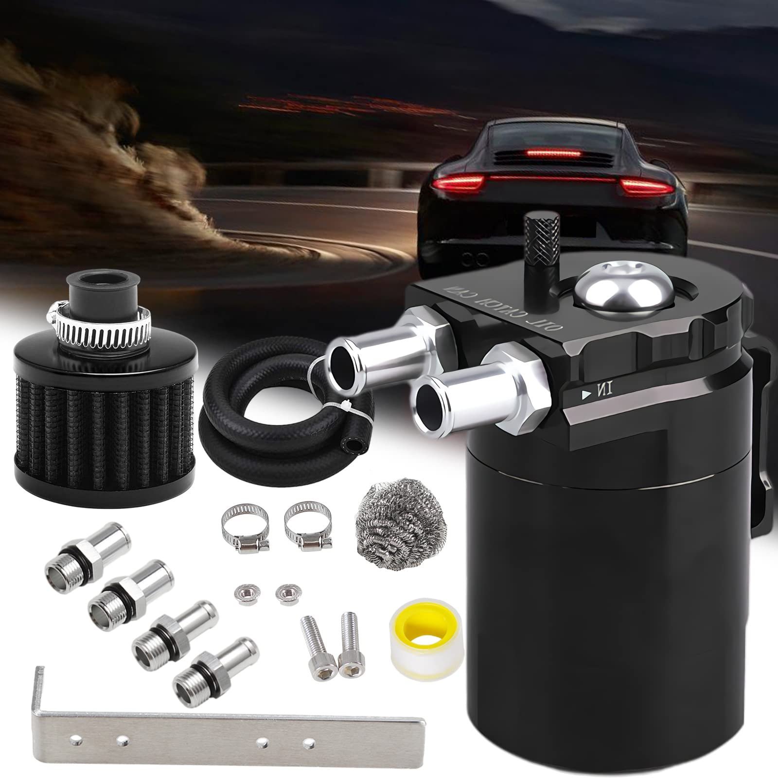 【Nitrile Rubber 3/8 ” Fuel Line】 The Oil Catch Can Kit uses a nitrile rubber 3/8″ hose that excels in oil resistance. high wear resistance. and good heat resistance. No need to purchase an additional hose.